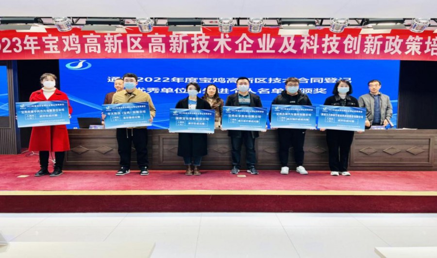 3月20日,2023年寶雞高新區(qū)高新技術(shù)企業(yè)及科技創(chuàng)新政策培訓(xùn)會(huì)順利召開,公司獲“2022年度技術(shù)合同認(rèn)定登記工作優(yōu)秀單位及先進(jìn)個(gè)人”獎(jiǎng)勵(lì),這是公司開展技術(shù)合同認(rèn)定工作后第三次榮獲此獎(jiǎng)勵(lì)。