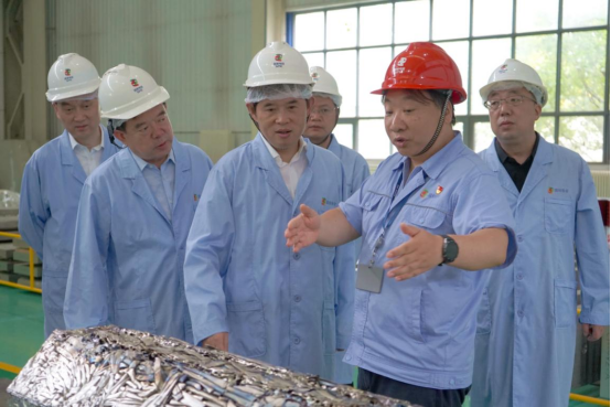 王勇一行在坯料廠熔煉車間進行實地調研,詳細了解了公司產業布局、企業經營效益、技術研發、產品工藝流程等情況,對公司核級鋯材國產化、自主化發揮的重要作用給予充分肯定。王勇表示,國核鋯業作為擁有中國首條完整核級鋯材產業鏈的企業,承擔著實現我國核級鋯材國產化、自主化的重要使命,填補了我國核級鋯材產業空白,解決了核級鋯材全部依賴進口的被動局面。希望在后續發展中,國核鋯業能夠立足資源稟賦與產業特色,注重品質、貼近市場,進一步深挖發展潛力,培育增長動能,實現企業的穩健發展。