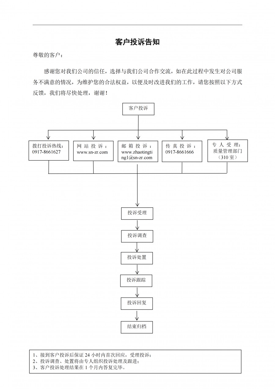 客戶投訴告知