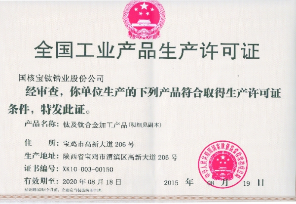 國核鋯業鈦及鈦合金加工產品生產許可資格
