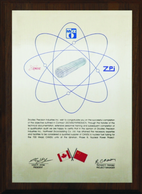 國核鋯業獲得西屋電氣公司頒發的AP1000核級鋯材生產線鑒定證書
